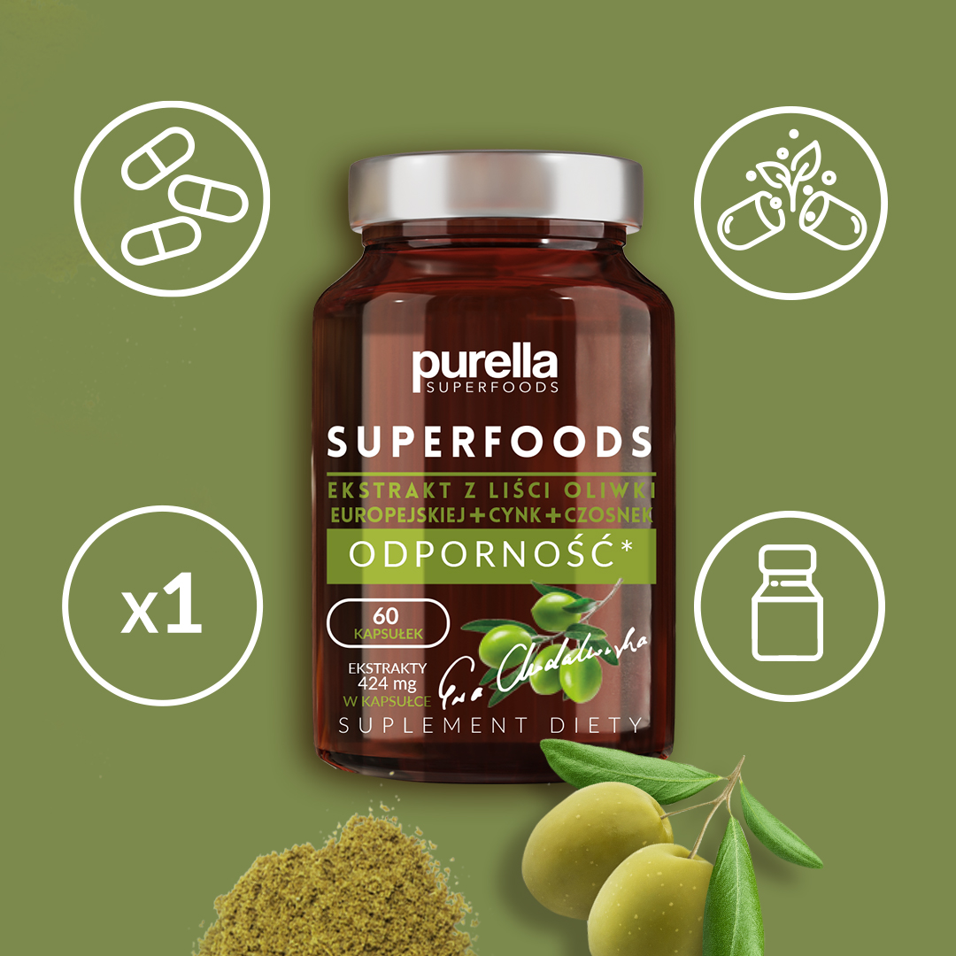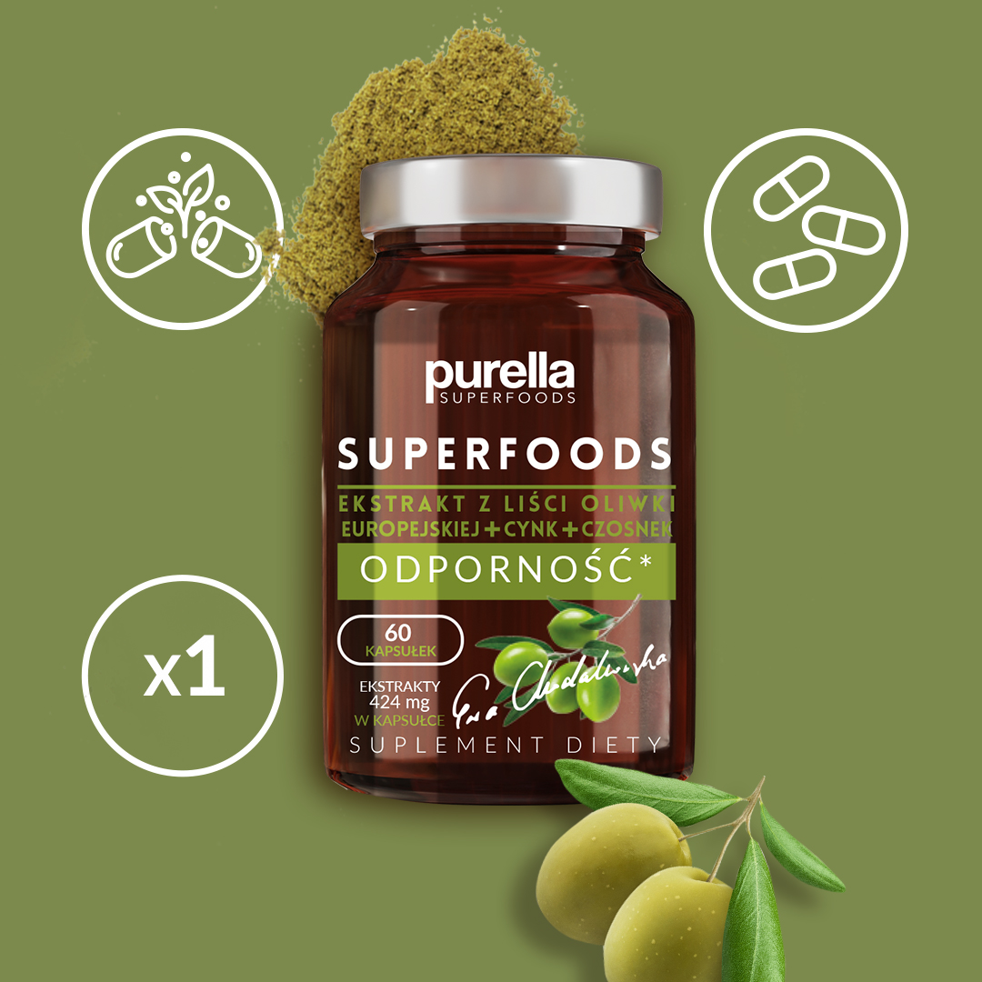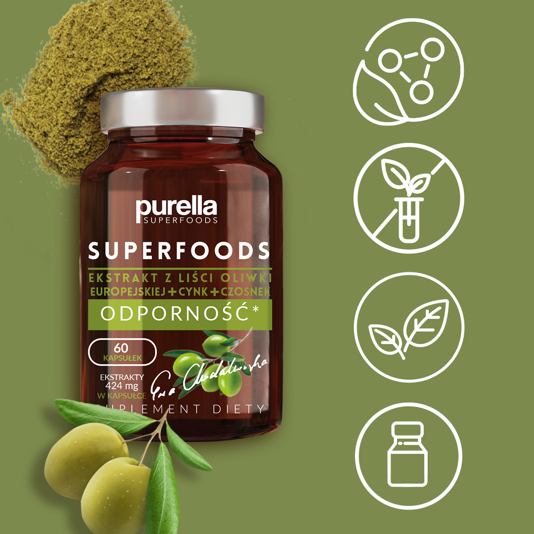 Suplement diety Ekstrakt z liści oliwki ODPORNOŚĆ Purella Superfoods 60 kap