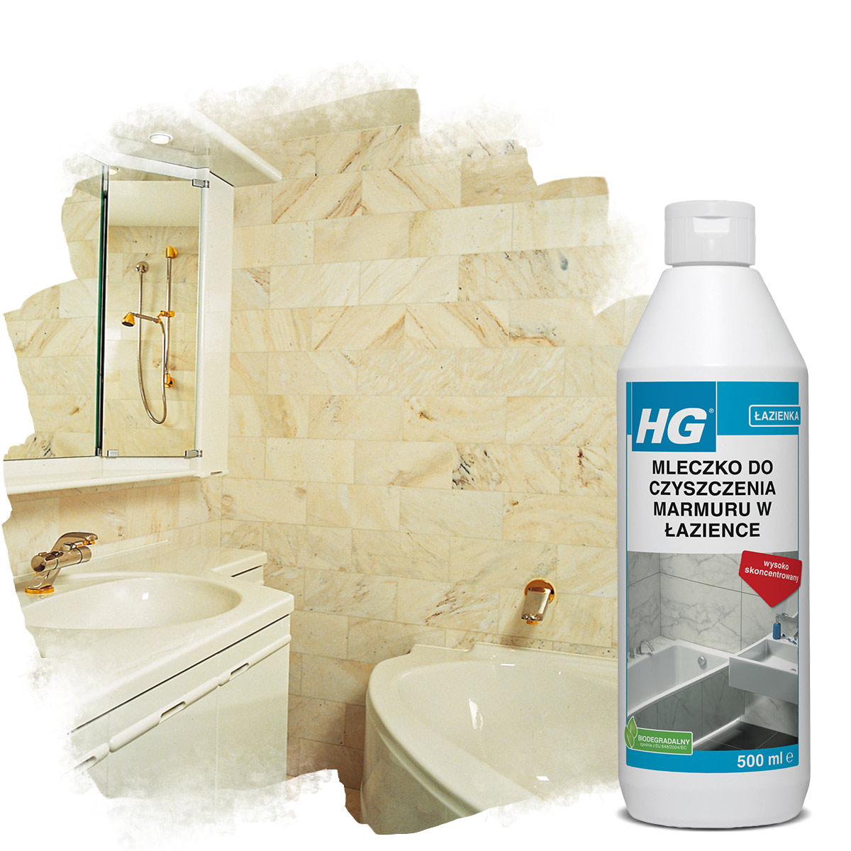 HG mleczko do czyszczenia marmuru w łazience jest silnie skoncentrowanym środkiem do czyszczenia, który skutecznie usuwa uporczywy brud, taki jak resztki mydła i lekki osad z kamienia.