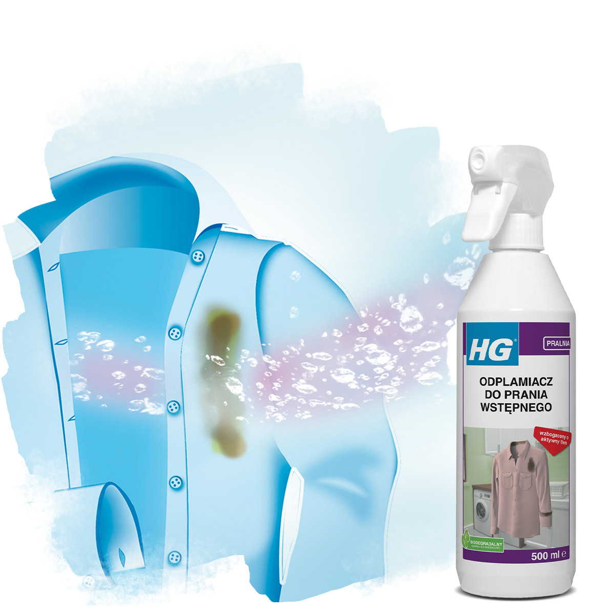 HG odplamiacz do prania wstępnego to produkt, który usunie plamy spowodowane czerwonym winem, herbatą, sokiem owocowym, czekoladą, sosem, szpinakiem, trawą i ziemią.