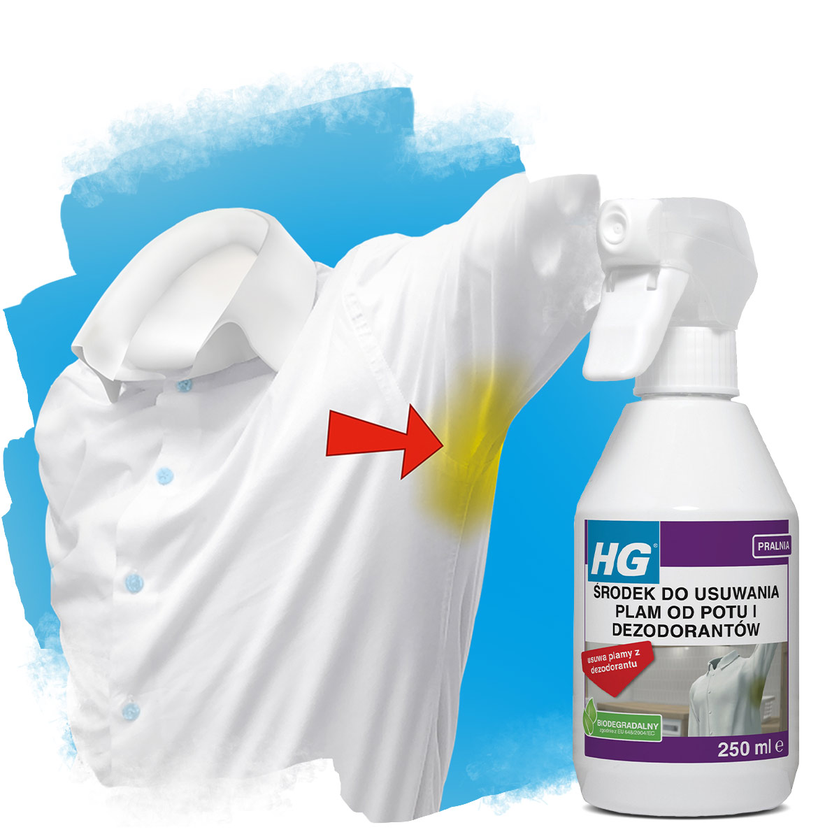Typowe środki do prania lub odplamiacze nie radzą sobie z usuwaniem plam od potu i dezodorantów. Środek HG nie tylko szybko i bezpiecznie pozbędzie się ich z tekstyliów, ale również zapobiega powstawaniu plam na odzieży, w tym żółtych plam.