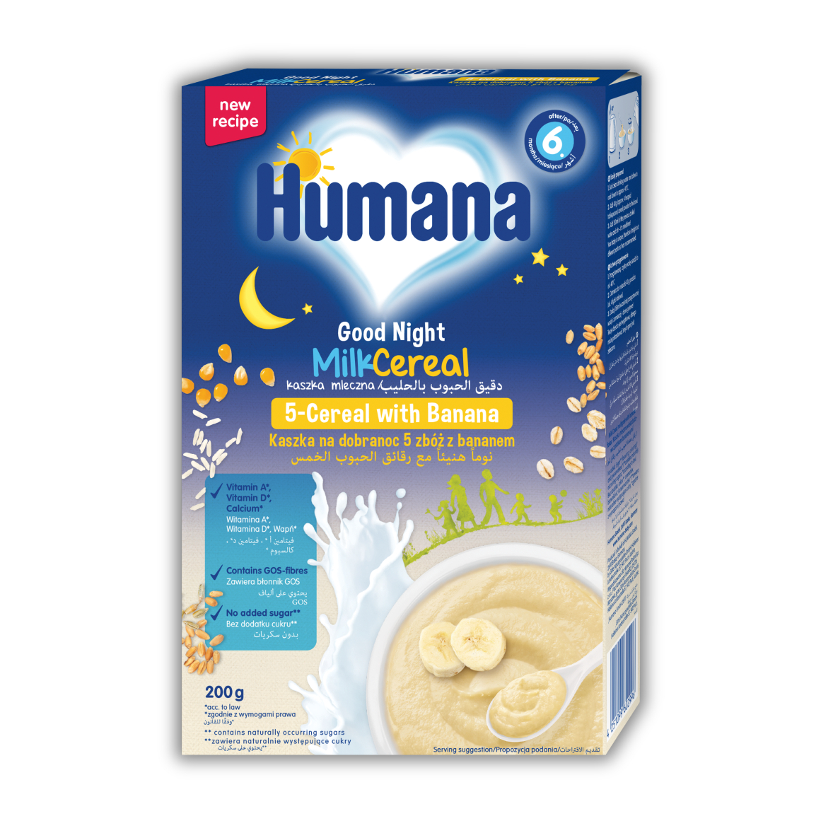 Humana Kaszka mleczna na dobranoc 5 zbóż z bananem po 6. miesiącu 200 g