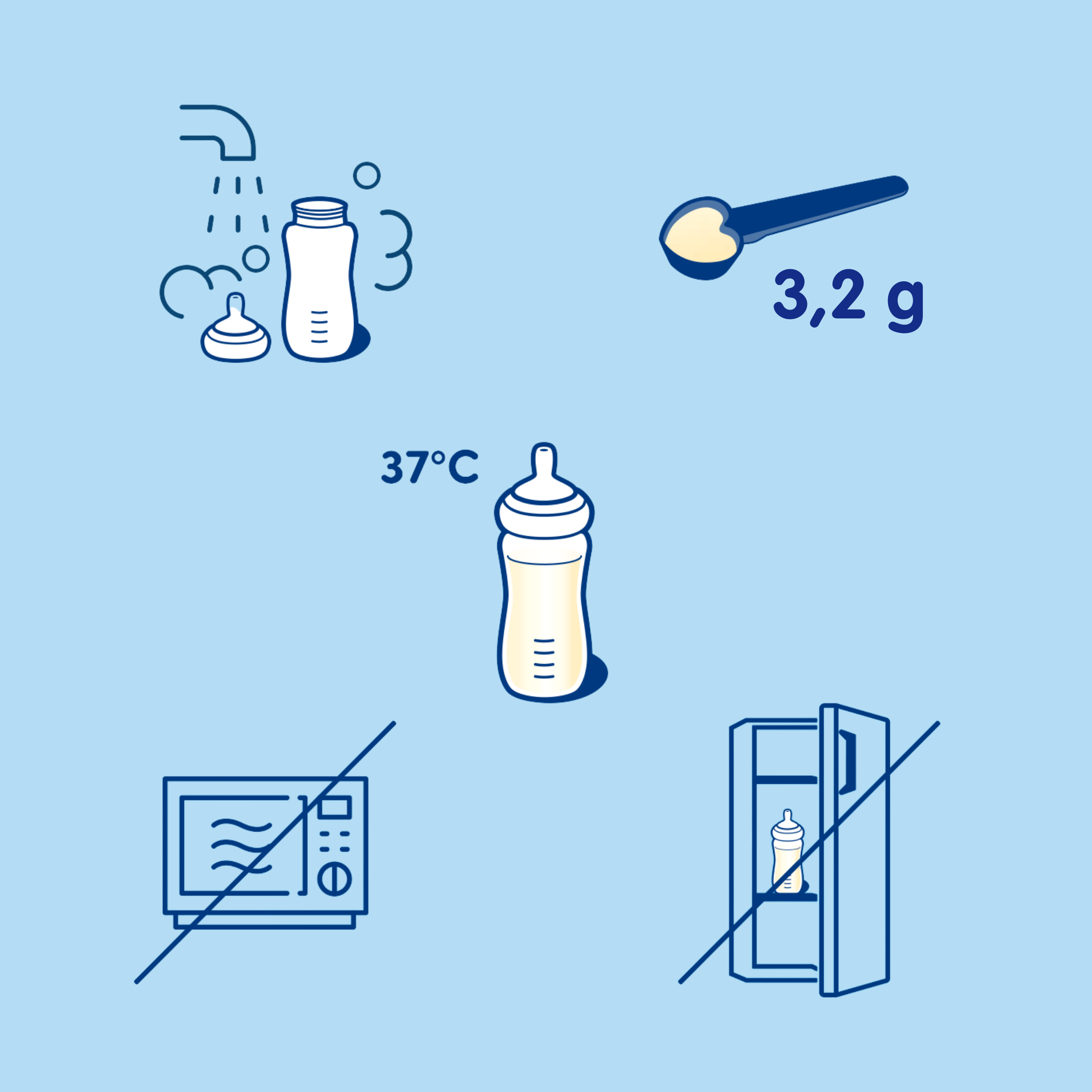 Aby zapewnić dziecku bezpieczeństwo i odpowiednią jakość posiłku, zawsze przygotowuj mleko zgodnie z zaleceniami: