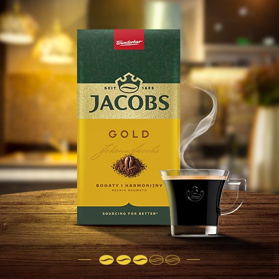Wyjątkowa kompozycja najlepszych ziaren kawy Jacobs sprawia, że Jacobs Gold ma prawdziwie harmonijny smak. Jacobs Gold uprzyjemni każdą chwilę!