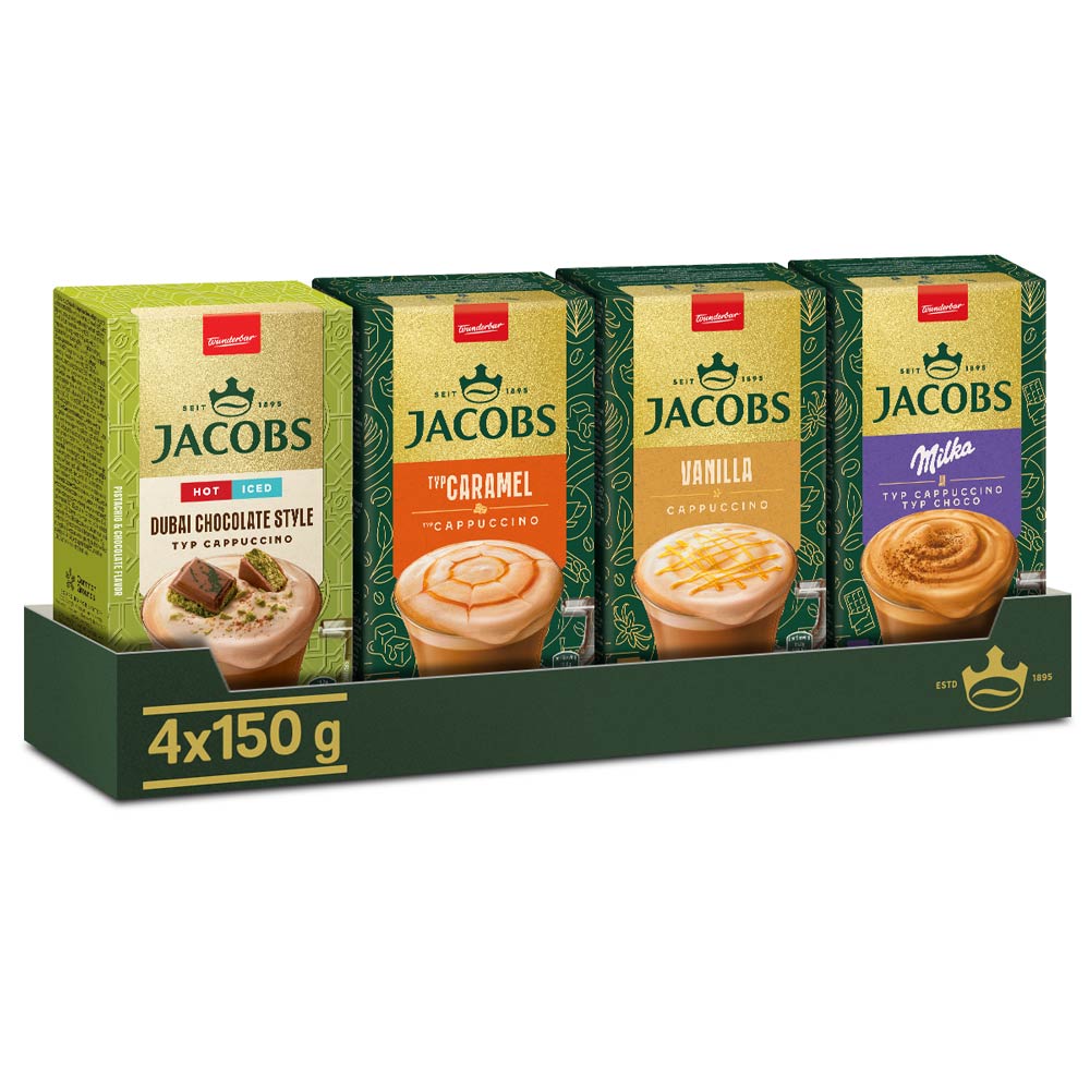 Zestaw 4 kaw rozpuszczalnych Jacobs Cappucino (Choco Milka, Vanilla, Caramel, Dubai)