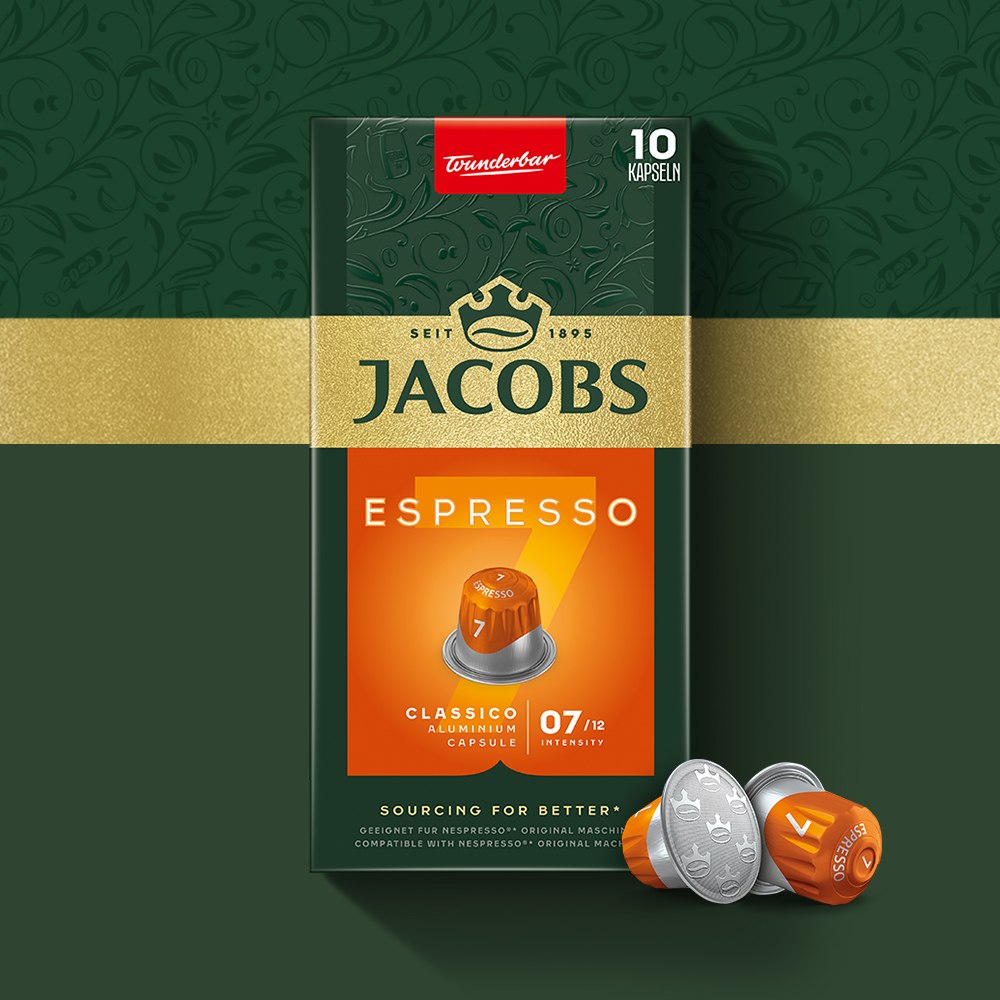 Kapsułki aluminiowe Jacobs Espresso Classico 10 sztuk, Intensywność 7, kompatybilne z ekspresami Nespresso®*