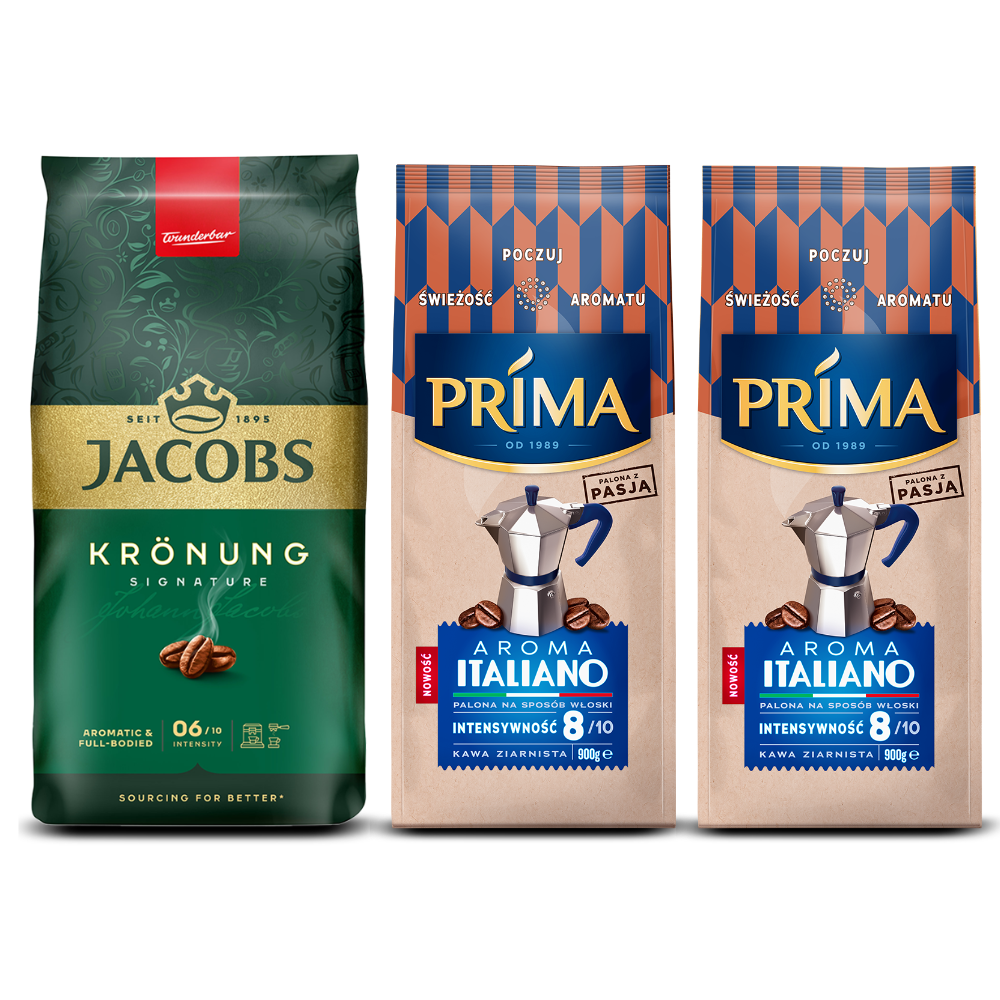 Kawa ziarnista Jacobs Krönung 1kg + Prima Aroma Italiano 2x900g