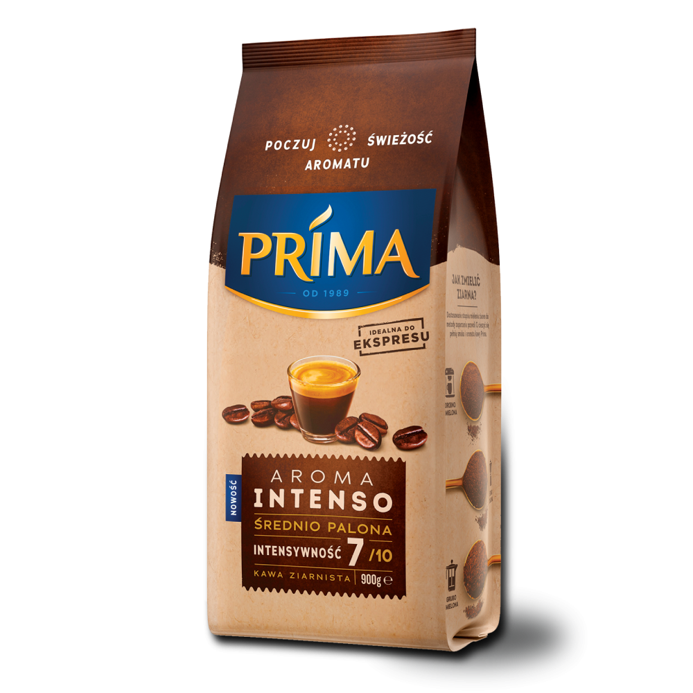 Prima Aroma Intenso to kompozycja wysokiej jakości ziaren Arabica i Robusta, idealna do ekspresu. Odpowiednio dobrany poziom palenia pozwala wydobyć z ziaren niepowtarzalny smak i aromat. Bogaty i wyrazisty smak Prima Aroma Intenso sprawi, że będzie ona ulubioną kawą miłośników klasycznych napojów kawowych i espresso.