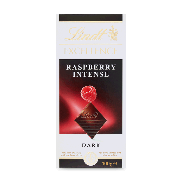 Czekolada gorzka z kawałkami malin. Lindt Excellence Raspberry Intense to jedwabista gorzka czekolada zrównoważona zniewalającym smakiem soczystych i słodkich malin. Każda tabliczka Lindt Excellence jest bogata i pełna w smaku. Najlepsze kakao i wysokiej jakości składniki, unikalny proces tworzenia i mielenia, jedwabiście gładka konsystencja sprawiają, że nasza czekolada jest wyjątkowa. Tabliczki Lindt Excellence łączą w sobie pasję, fachową wiedzę i doświadczenie naszych Maître Chocolatiers.