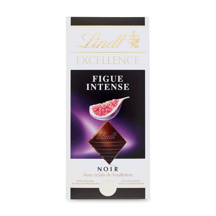 Lindt Excellence Intense Figue to tabliczka wyjątkowej czekolady o bogatym smaku, stworzona z najlepszych składników przez naszych Maîtres Chocolatiers. Wyśmienita czekolada łączy w sobie smak figi i kawałeczki pysznych herbatników, zapewniając ucztę dla wszystkich zmysłów. Naciesz oczy gładką strukturą i głębokim kolorem oraz wsłuchaj się w charakterystyczny, wyrazisty trzask towarzyszący łamaniu cieniutkich kostek czekolady w kształcie diamentów. Poczuj bogaty aromat, zanim zagłębisz się w figową symfonię smaku rozpływającej się w ustach czekolady Lindt.