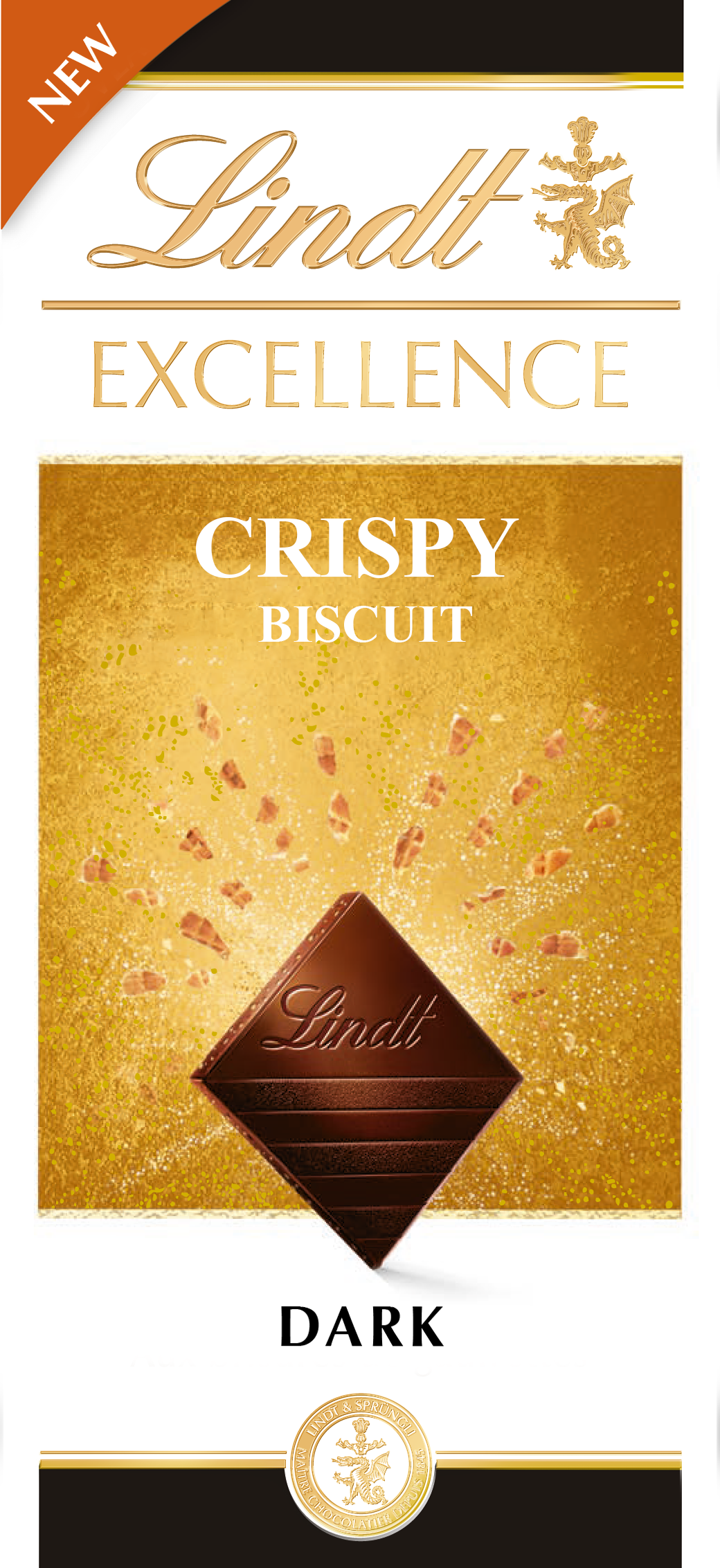 Czekolada gorzka z dodatkiem kruchych ciasteczek. Lindt EXCELLENCE Crispy Biscuit to wyśmienita ciemna czekolada z dodatkiem chrupiących ciasteczek.