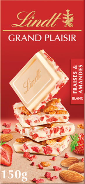 Lindt Grand Plaisir czekolada biała z migdałami i chrupiącymi truskawkami 150g