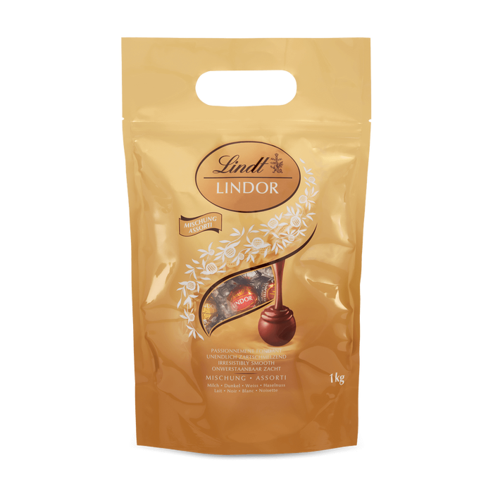 Pralinki z czekolady mlecznej, gorzkiej i białej z delikatnie rozpływającym się nadzieniem (44%).