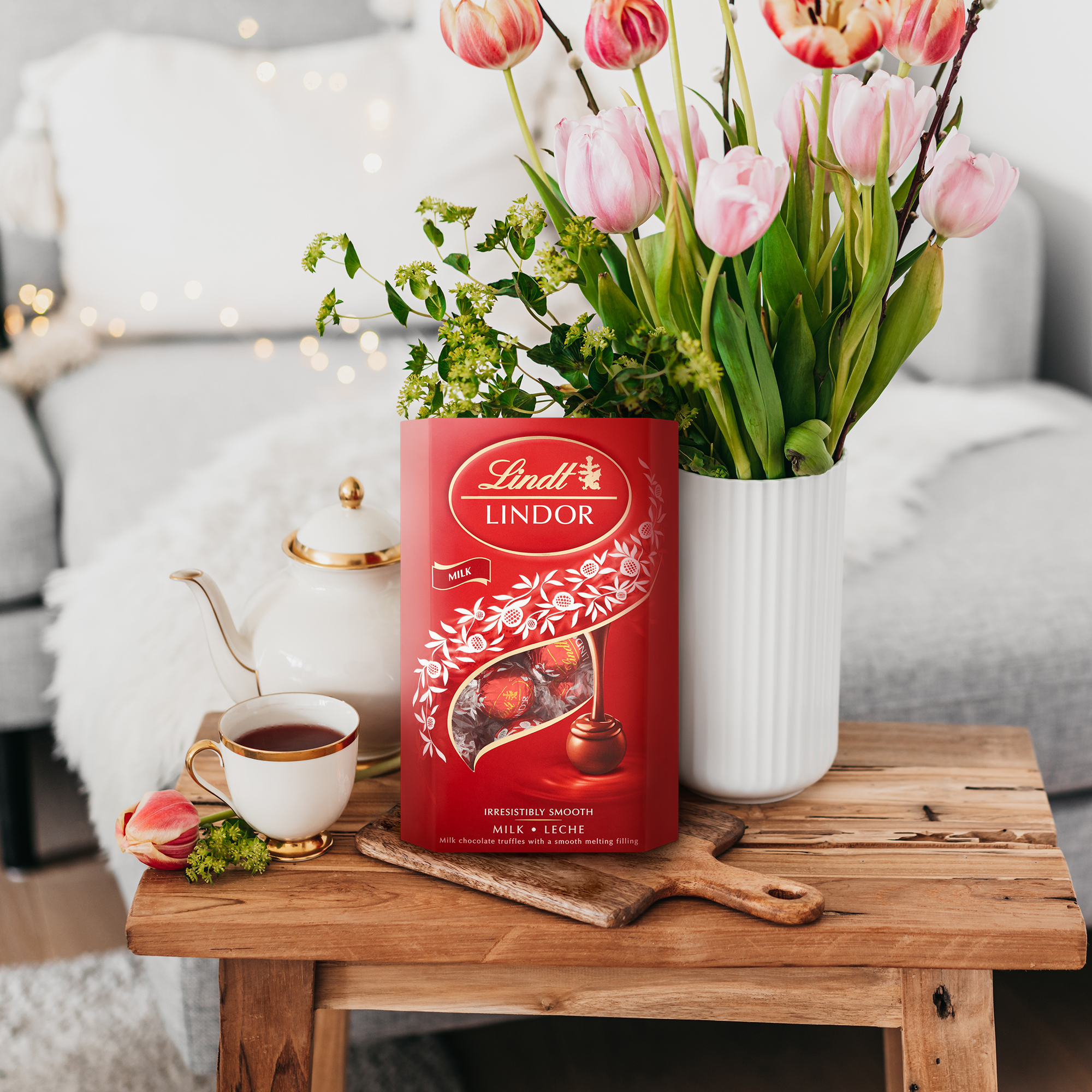 Pralinki z czekolady mlecznej z rozpływającym się nadzieniem (44%).Lindt LINDOR Milk to praliny z czekolady mlecznej, rozpływające się w ustach, ze zniewalająco aksamitnym nadzieniem w otoczce z mlecznej czekolady.