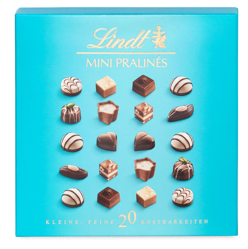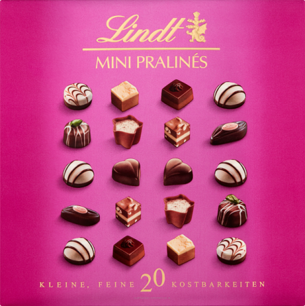 Mini Pralines to asortyment 20 apetycznych Mini Pralinek Lindt to najlepsza czekolada, wyśmienite nadzienie i eleganckie opakowanie. W opakowaniu znajdziesz Mini Praliny w 9 różnych smakach, które każdy pokocha.