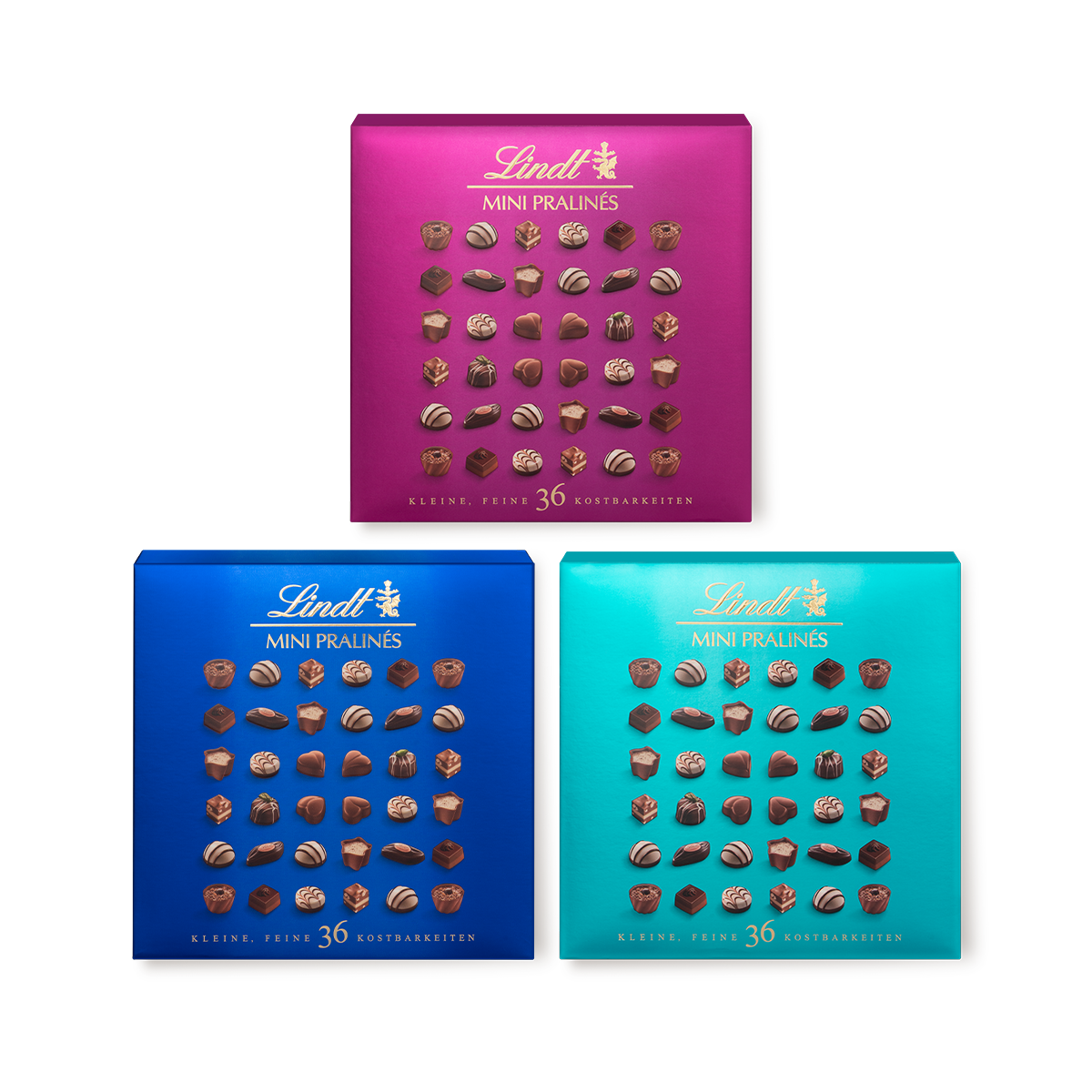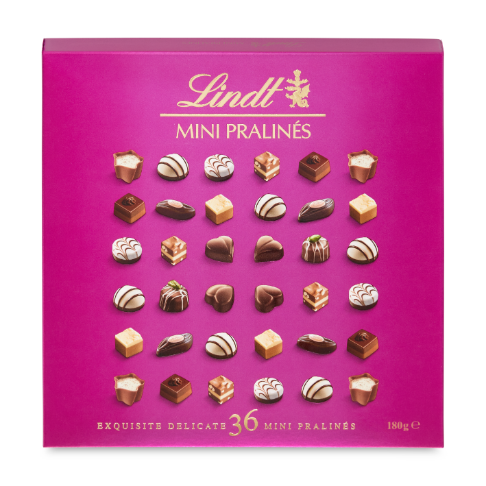Mini Pralines to asortyment 36 apetycznych Mini Pralinek Lindt to najlepsza czekolada, wyśmienite nadzienie i eleganckie opakowanie. W opakowaniu znajdziesz Mini Praliny w 9 różnych smakach, które każdy pokocha.