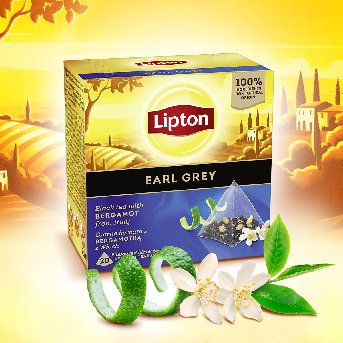Z myślą o miłośnikach wyrafinowanej klasyki, którzy potrzebują odmiany, nasi mistrzowie herbaty przygotowali kompozycję Lipton Earl Grey z dodatkiem olejku z bergamotki z gorącej Sycylii. Sekretem aromatycznej mieszanki są duże, delikatnie zwinięte liście herbaty czarnej o niezwykłym smaku. Sięgnij po aromatyzowaną herbatę Lipton Earl Grey z serii Lipton Discovery Collection i pozwól światłu wypełnić cię od środka!