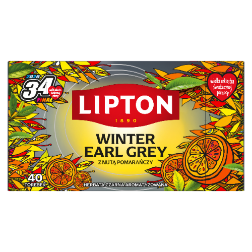 Herbata czarna aromatyzowana Lipton Winter Earl Grey z nutą pomarańczy 40 torebek