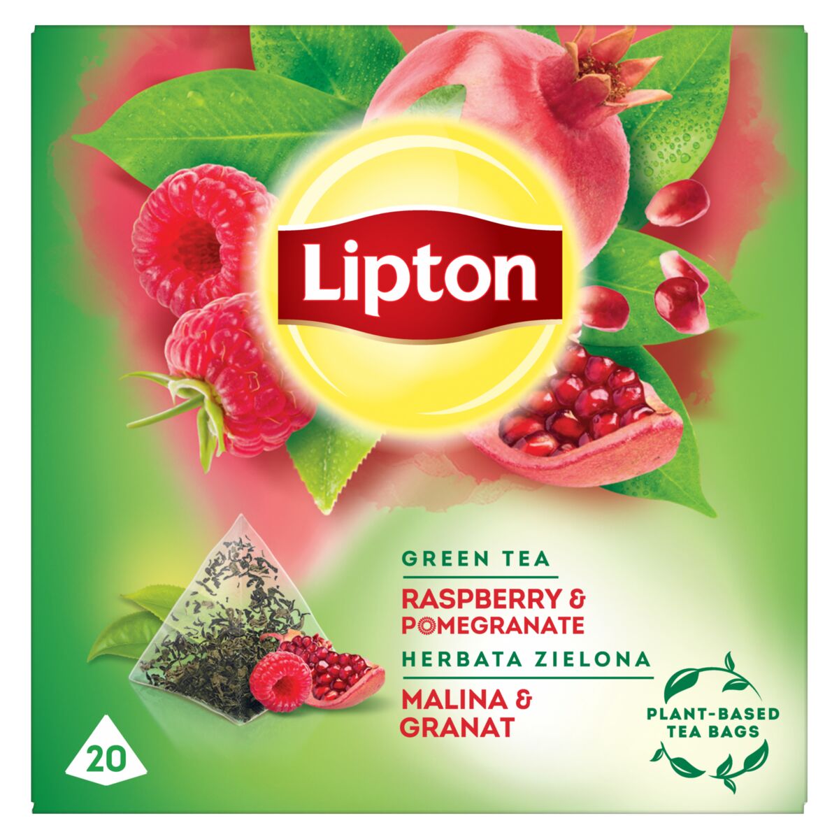 Lipton o smaku Malina i granat Herbata zielona aromatyzowana 28 g (20 piramidek)