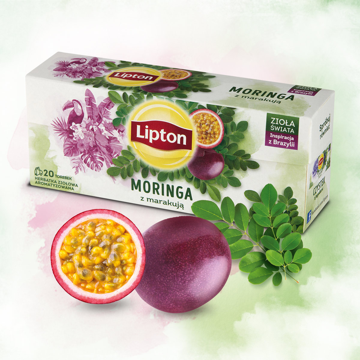 Lipton Moringa z Marakują to wyśmienita herbatka ziołowa inspirowana brazylijską dżunglą słynącą z wyjątkowego bogactwa fauny i flory. W tym zaskakującym duecie smakowym niewielka goryczka ziela podkreślona została marakują przez wielu uważaną za najbardziej aromatyczny owoc świata.