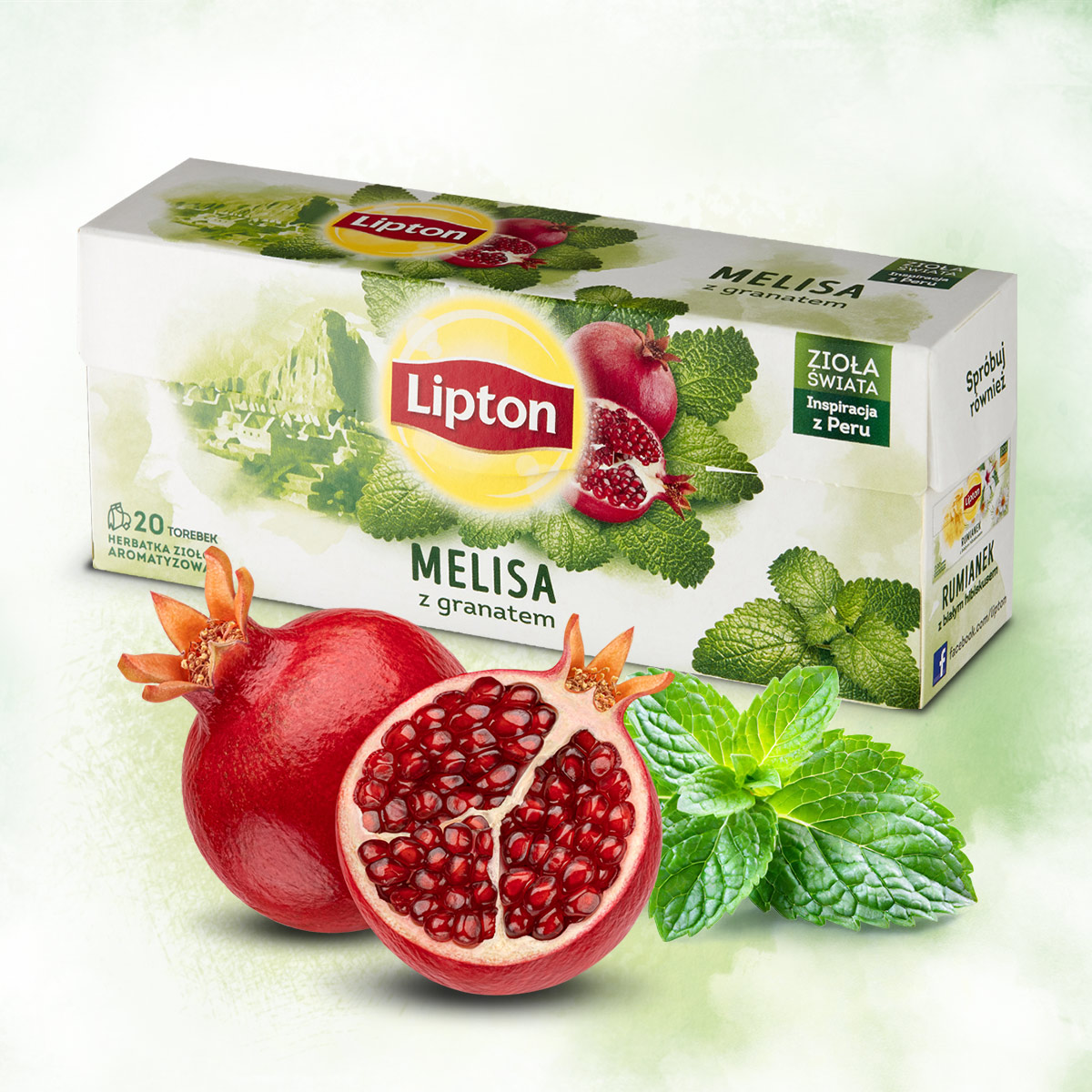 Lipton herbatka ziołowa Melisa z Granatem inspirowana jest egzotycznym Peru słynącym z przepięknych krajobrazów i pełnej aromatów kuchni.