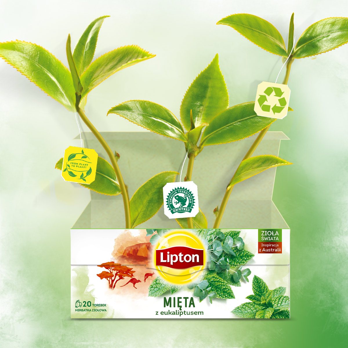 Lipton herbatka ziołowa wykazuje działanie prozdrowotne. Mięta pieprzowa pozytywnie wpływa na pracę układu pokarmowego i działa rozkurczowo, a aromatyczny eukaliptus wspomaga wykrztuszanie, usuwanie wolnych rodników z organizmu oraz udrażnia zatoki. Herbatki ziołowe Lipton inspirowane światem