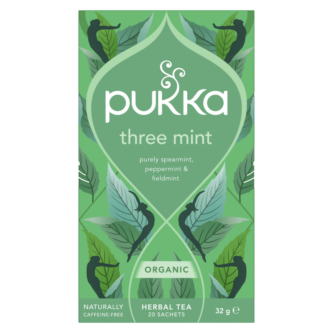 Zanurz się w aromatycznym świecie orzeźwienia z herbatką ziołową Pukka Three Mint. To połączenie trzech odmian mięty, które razem tworzą doskonale harmonijny smak. Intensywne i rześkie nuty mięty polnej oraz mięty pieprzowej balansuje bardziej subtelna mięta zielona. Odświeżające ziołowe trio to nie tylko energetyzujący smak, ale porcja dobrodziejstw natury. Zaparz aromatyczną herbatę Pukka Three Mint, odpręż się i poczuj dobroczynny wpływ natury!