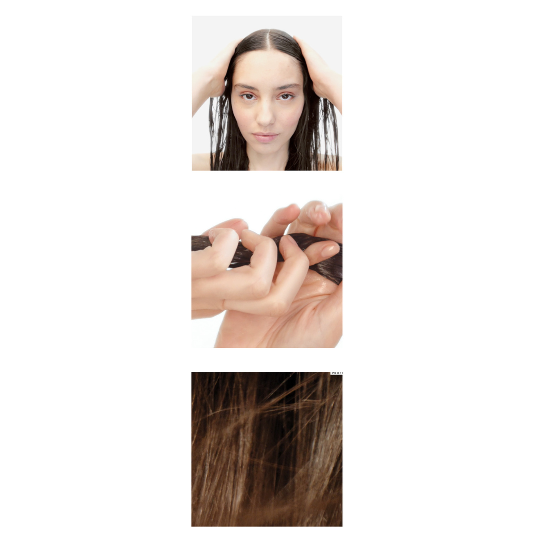 - Aplikuj na umyte i osuszone ręcznikiem włosy.
