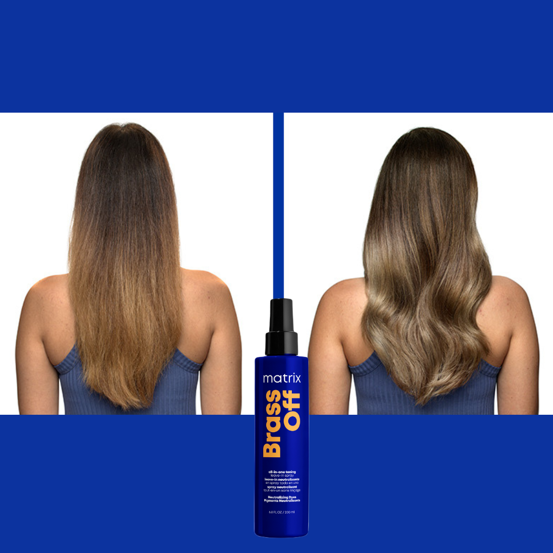 • Po użyciu szamponu i odżywki z gamy Brass Off, zaaplikować spray neutralizujący na osuszone ręcznikiem włosy.