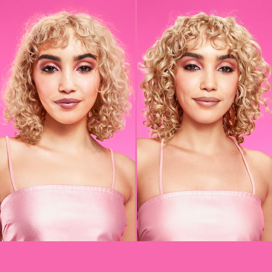 Efekt osiągnięty przy zastosowaniu systemu Instacure Build-A-Bond, składającego się z szamponu, odżywki, płynnej maski i balsamu.