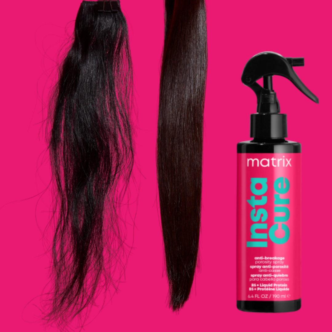 - Instacure wypełnia luki w strukturze włosa, wzmacniając je i wyrównując pH.