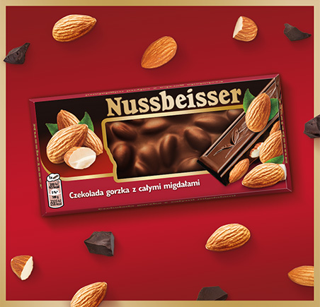 Spróbuj czekolady Nussbeisser z całymi migdałami.
