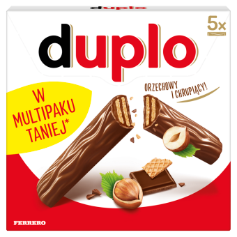 Batonik Duplo to chrupiący wafelek z delikatnym kremem orzechowym, oblany wyśmienitą mleczną czekoladą. Tak niepowtarzalnie smakuje tylko Duplo…
