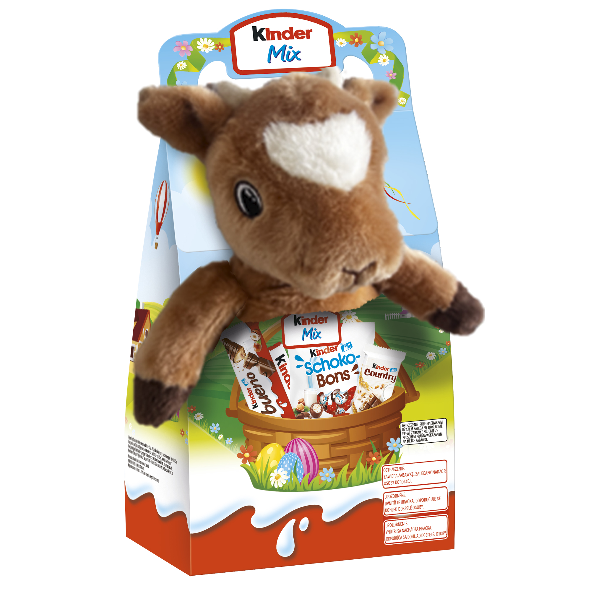 Odkryj zestaw słodyczy KINDER Maxi Mix G133 z pluszową maskotką. Wybierz jedną z sześciu pluszaków, która w połączeniu z czekoladowymi słodkościami od KINDER, sprawi, że każda chwila stanie się wyjątkowa.