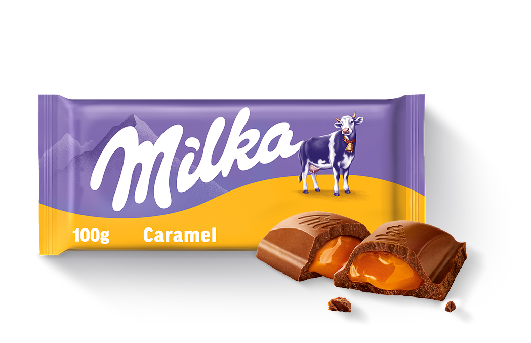 Pyszny, rozpływający się w ustach karmel oblany najdelikatniejszą w smaku mleczną czekoladą z alpejskiego mleka. To właśnie Milka Caramel.