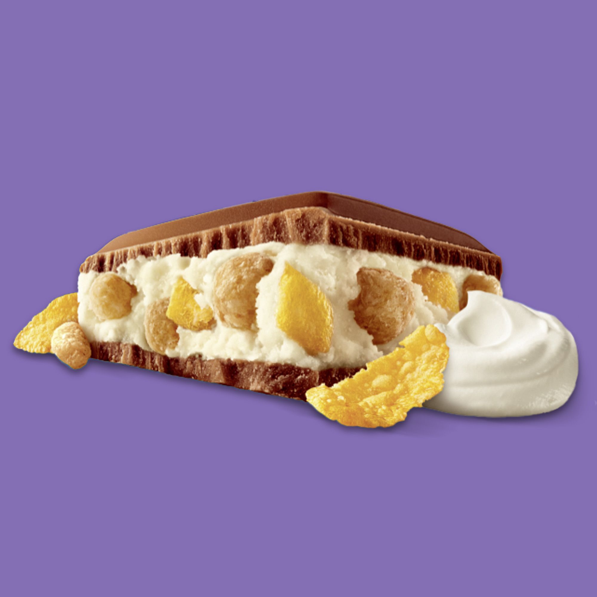 To idealne połączenie różnorodnych składników, przekonaj się, jak mleczna czekolada z alpejskiego mleka i jogurt łączą się z chrupiącymi płatkami kukurydzianymi i ryżowymi.