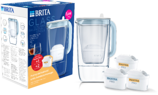 BRITA Szklany dzbanek filtrujący GLASS + 1 wkład MX PRO Pure Performance + 2 wkłady MX PRO Hard Water Expert