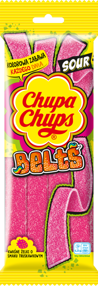Chupa Chups Long Belts żelki paski o smaku truskawkowym z kwaśną posypką 125g