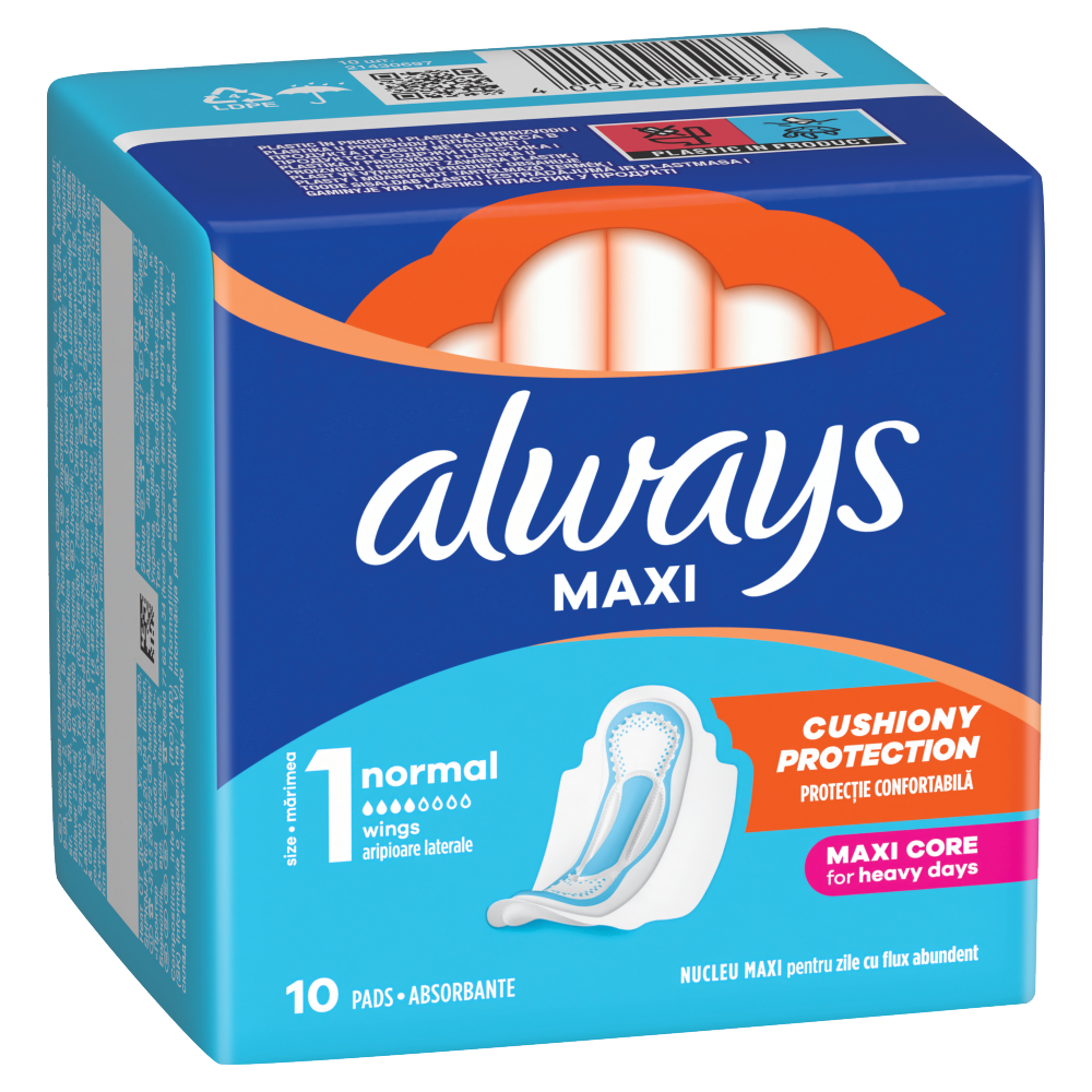 Zapewnij sobie ochronę dzięki Podpaskom ze skrzydełkami Always Maxi Normal (Rozmiar 1). Zaprojektowane specjalnie z myślą o obfitym krwawieniu podpaski z ultrachłonnym wkładem zapewniają doskonałą, zaawansowaną ochronę przed przeciekaniem. Miękka powłoczka zwiększa komfort noszenia, a grubsza konstrukcja podpaski zapewnia poczucie pewności siebie i niezawodną ochronę przed przeciekaniem.