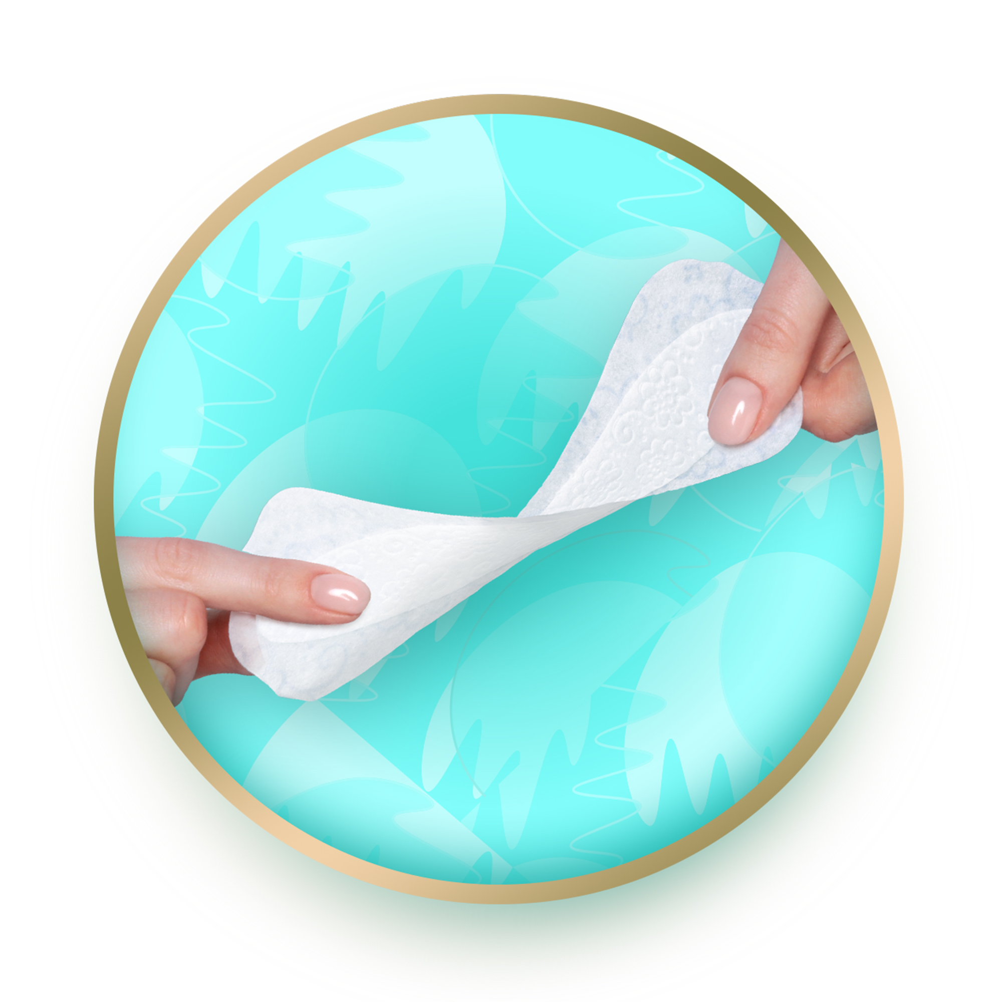 Te wkładki higieniczne pozwalają swobodnie oddychać skórze miejsc intymnych, co zapewnia uczucie świeżości i komfortu aż do 12 godzin. Są tak cienkie, że nawet ich nie poczujesz, a ich uniwersalny kształt sprawia, że pasują do każdego typu bielizny.