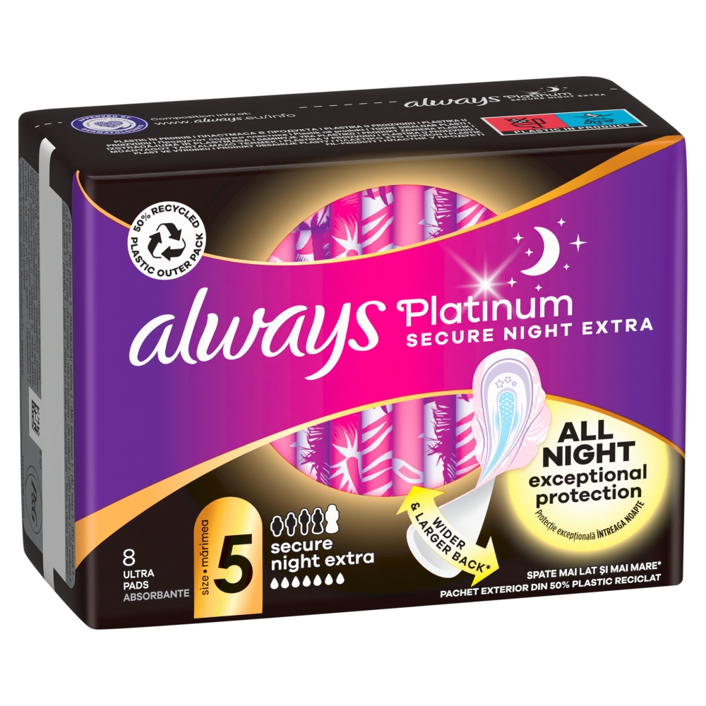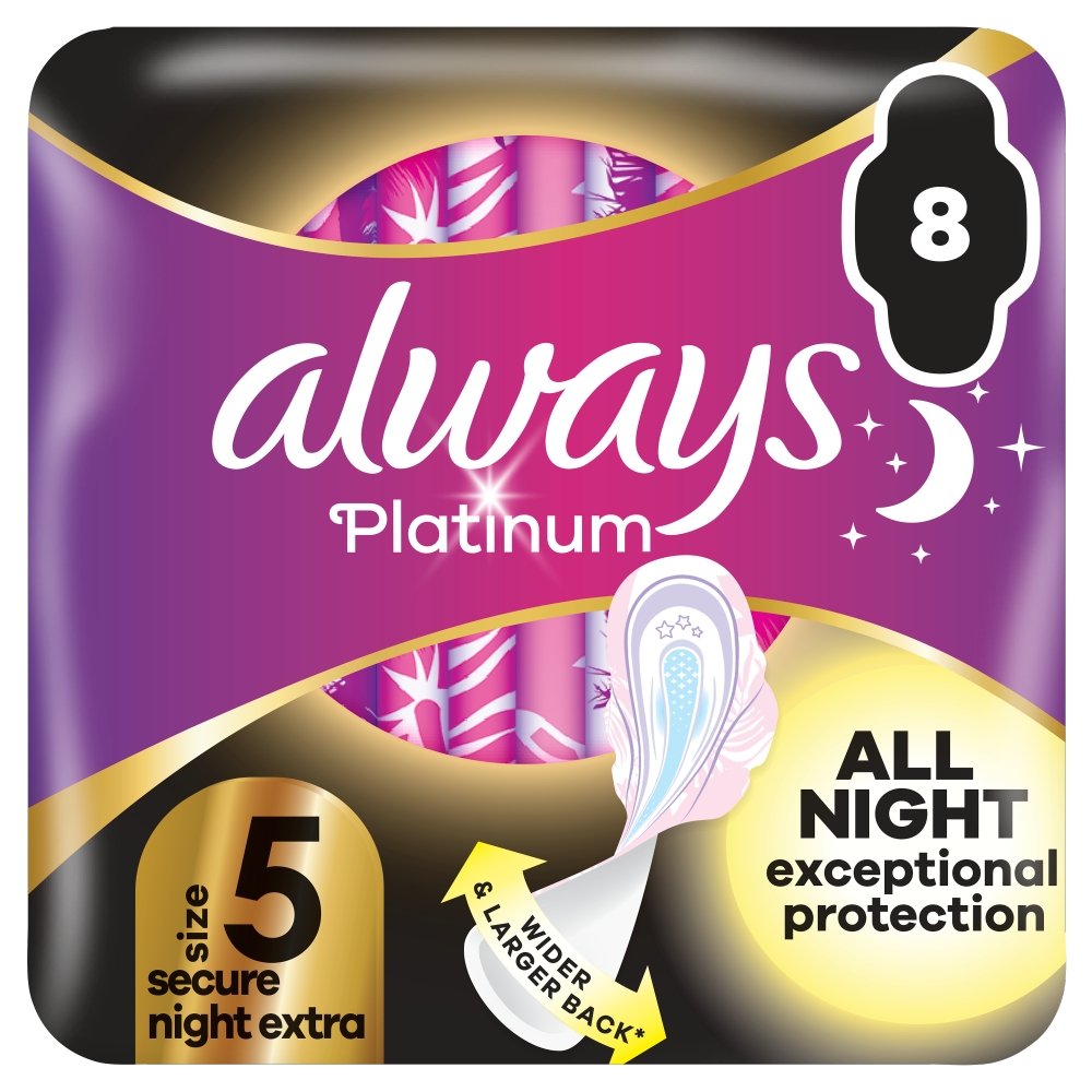Always Platinum Podpaski ze skrzydełkami Secure Night Extra rozm 5, 8 sztuk