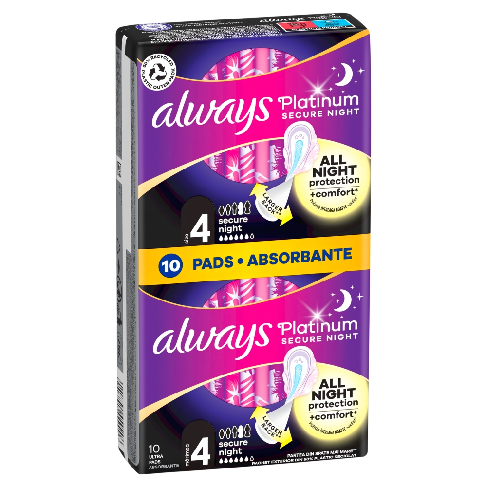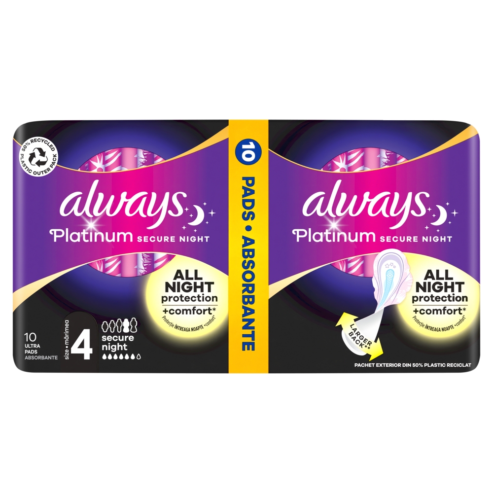 Always Platinum Secure Night Podpaski ze skrzydełkami rozmiar 4, 10 sztuk