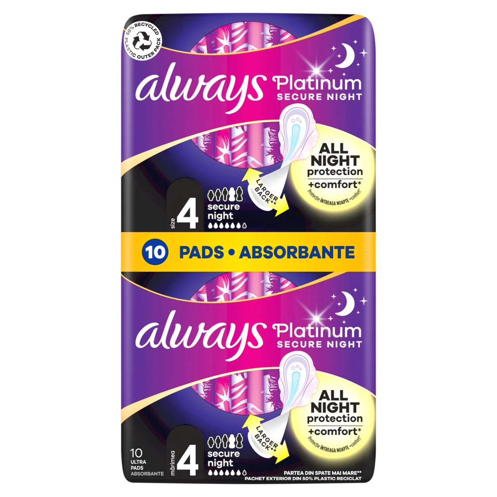 Always Platinum Secure Night Podpaski ze skrzydełkami rozmiar 4, 10 sztuk