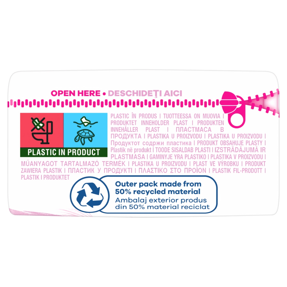 Miękka jak bawełna powłoczka oraz unikalne strefy komfortu zapewniają delikatnej skórze dodatkową wygodę. Skrzydełka zapewniają dodatkową ochronę i pomagają utrzymać podpaskę na miejscu.