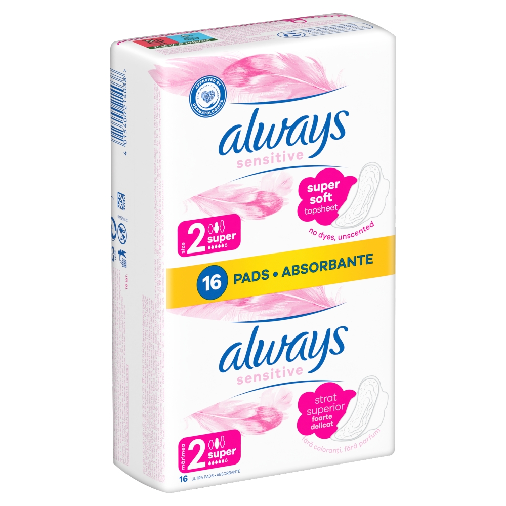 Always Ultra Sensitive Super podpaski ze skrzydełkami rozmiar 2, 16 sztuk