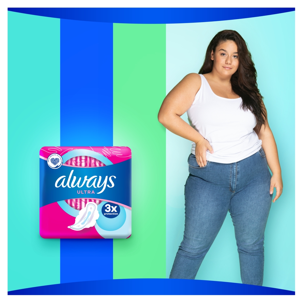 Dzięki Always Ultra możesz czuć się pewnie przez cały dzień. Wybierz dla siebie odpowiednie rozwiązanie – wybierz potrójną ochronę Always. Zatwierdzone dermatologicznie przez organizację Skin Health Alliance. Znajdź podpaskę idealnie dopasowaną do Twojego ciała dzięki Always My Fit, systemowi spersonalizowanego dobierania rozmiaru, który pomoże Ci znaleźć najlepsze zabezpieczenie oferowane przez markę Always w czasie okresu, zależnie od intensywności miesiączki i rozmiaru bielizny, jaki nosisz.