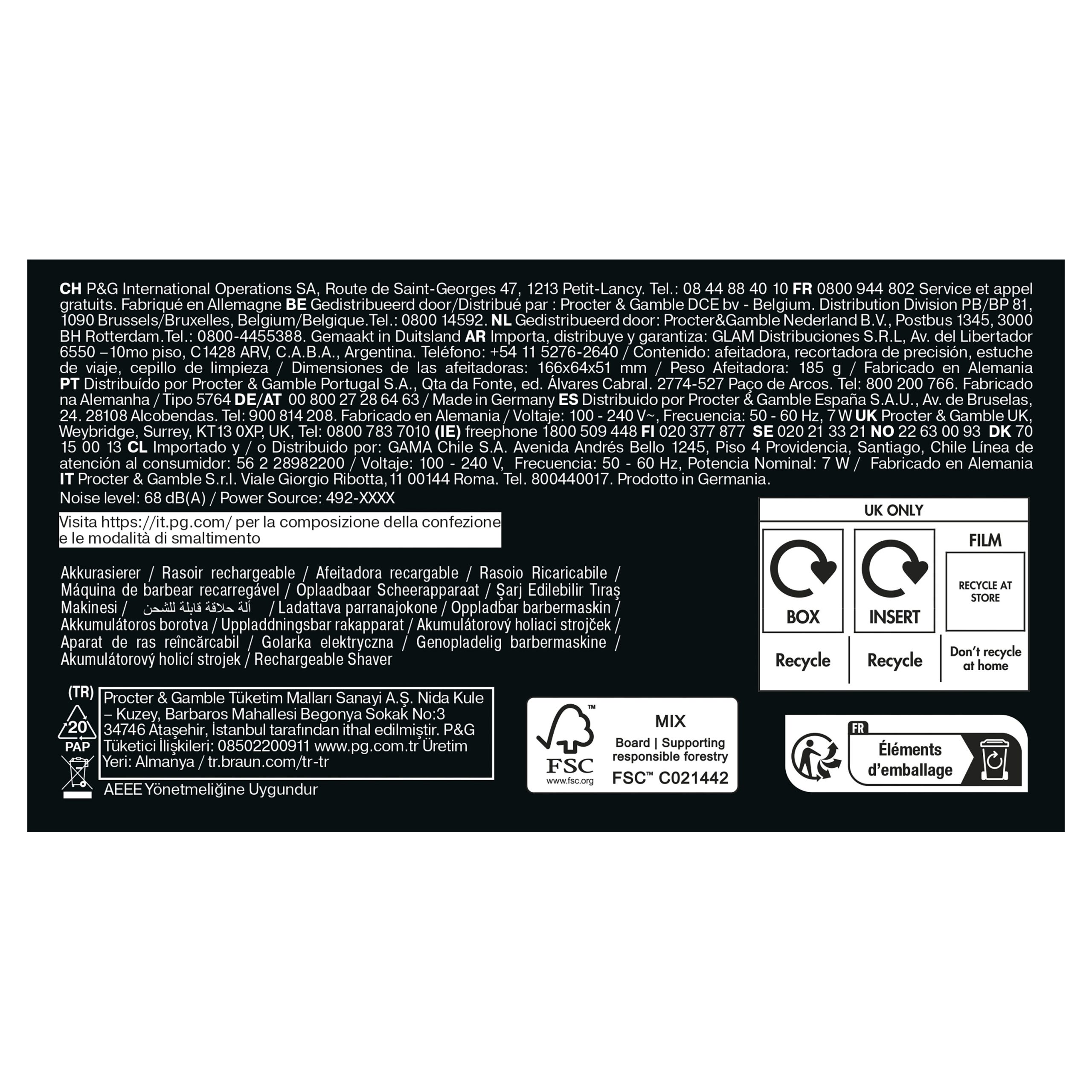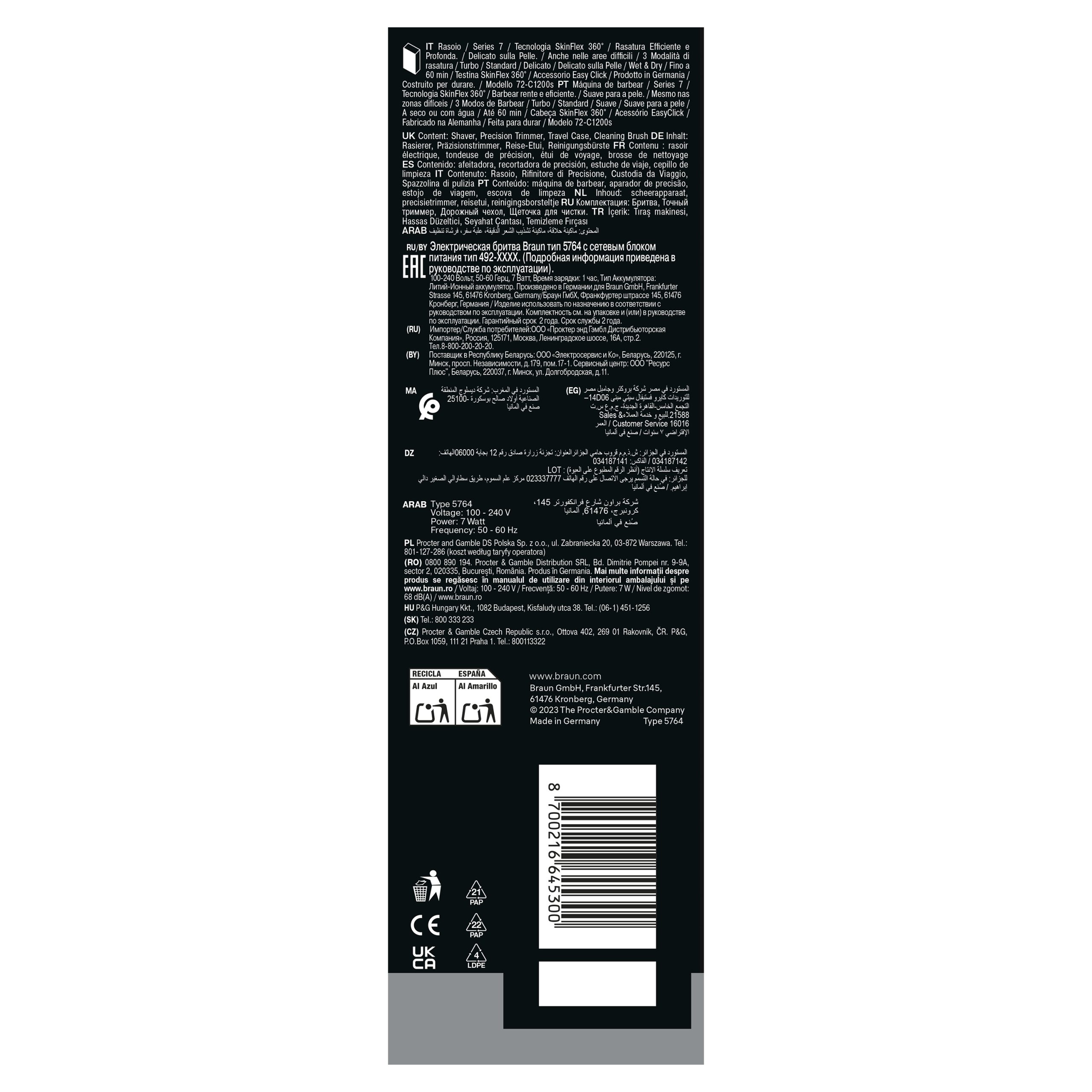 Wyprodukowano w Niemczech i zaprojektowano pod kątem wielu lat użytkowania: W 100% wodoodporna golarka do stosowania na mokro i na sucho. Do 60 minut działania akumulatora litowo-jonowego i 5 minut szybkiego ładowania umożliwiającego jedno golenie