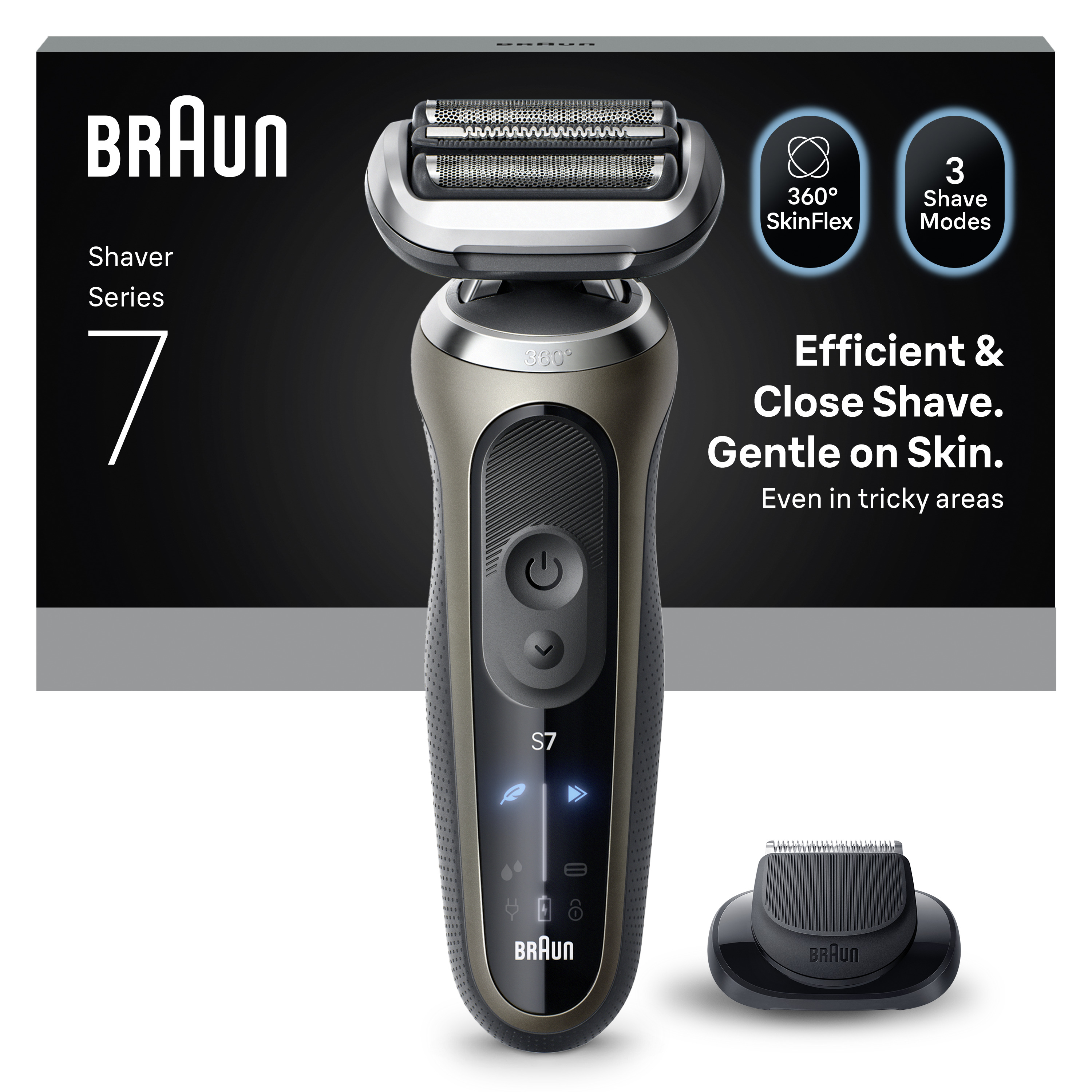 Dokładniejsze i szybsze golenie: Golarka elektryczna Braun Series 7 zapewnia dokładniejsze i szybsze golenie niż kiedykolwiek wcześniej, a przy tym jest delikatna dla skóry (w porównaniu z poprzednim modelem Series 7)