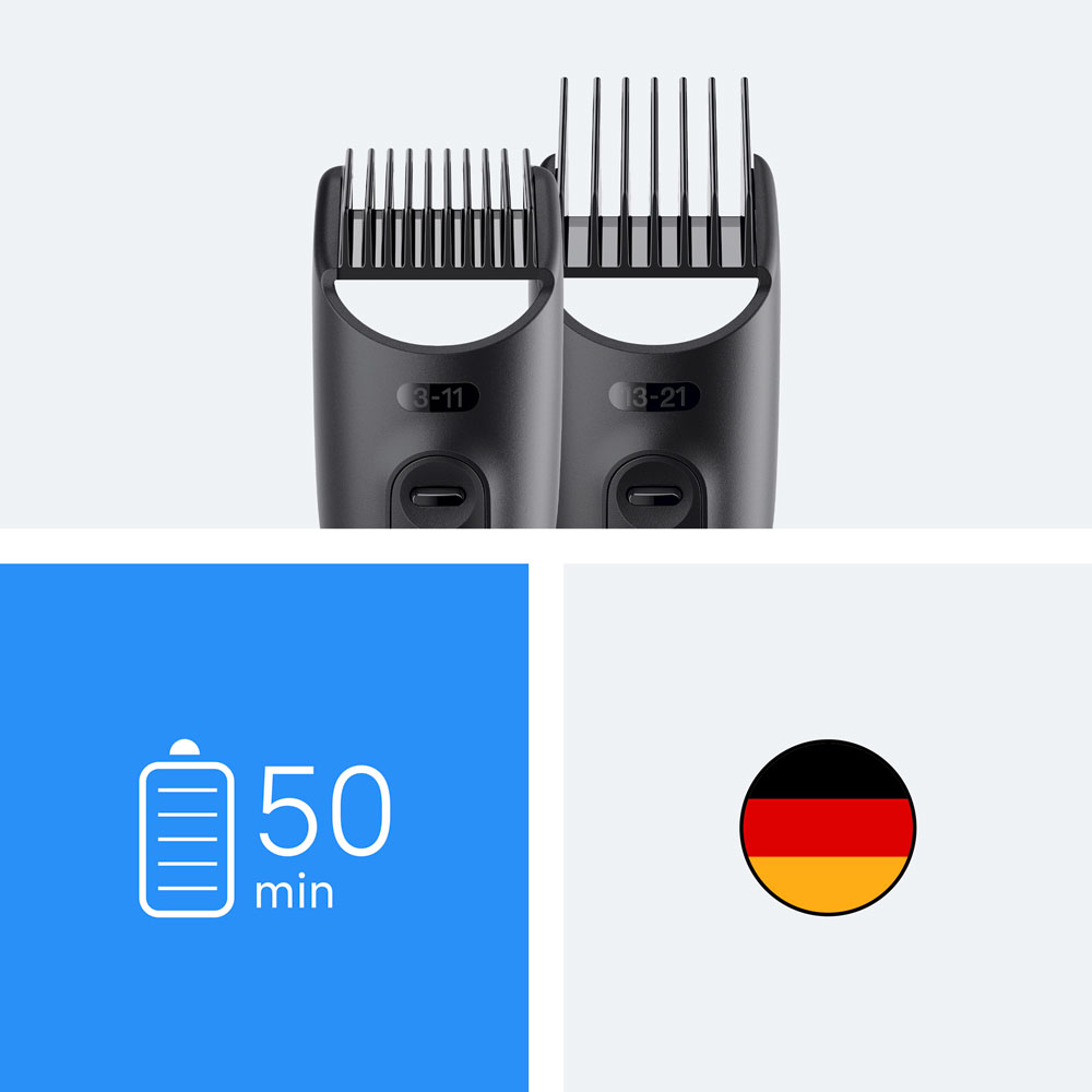 Zachowaj pełną kontrolę dzięki 14 ustawieniom długości. Zestaw zawiera głowice i grzebienie z możliwością mycia oraz wygodną szczoteczkę do czyszczenia. Wielofunkcyjny zestaw Braun Series 3, stworzony z myślą o trwałości, 50-minutowy czas działania.
