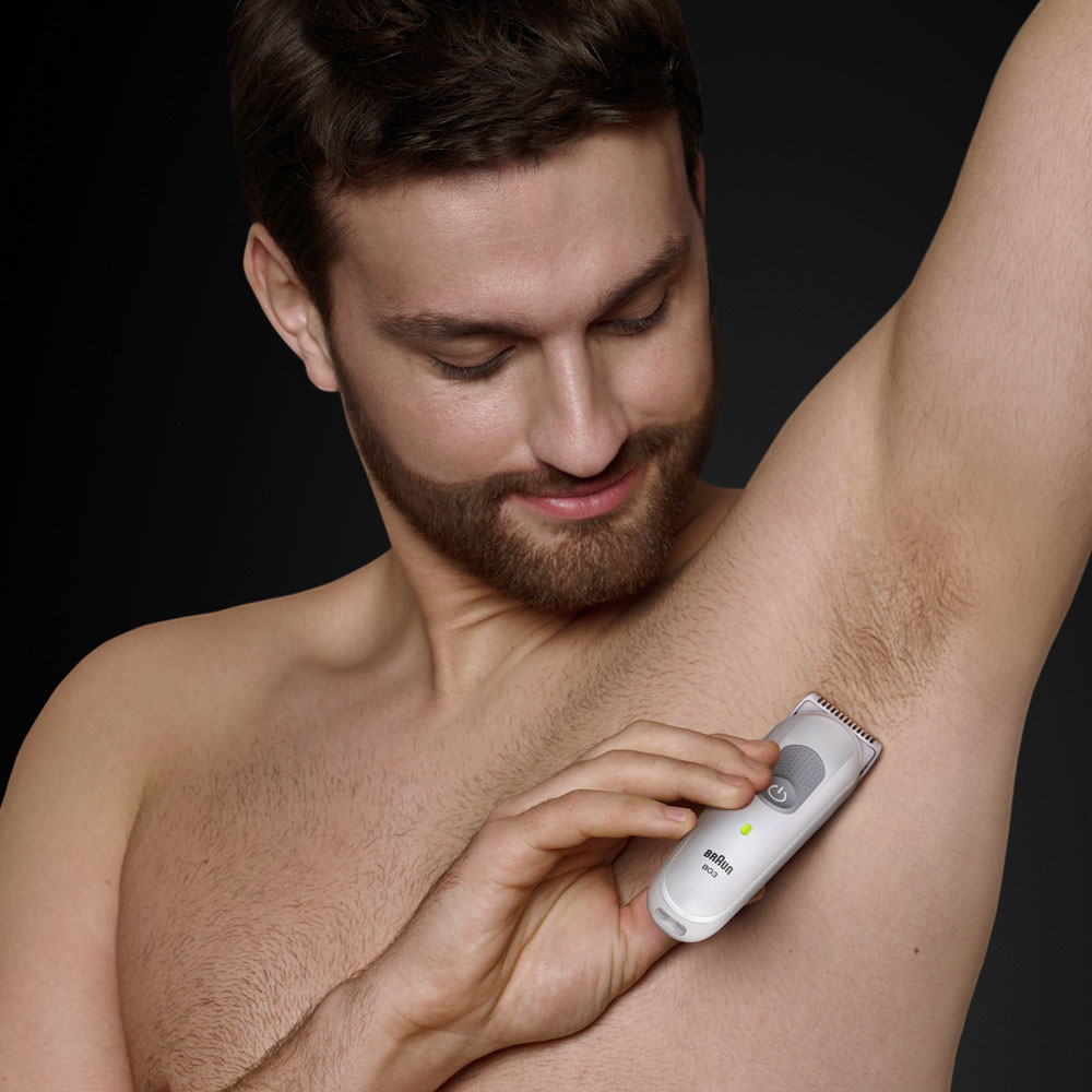 Delikatne i łatwe przycinanie: trymer do ciała Braun dla mężczyzn Series 3, zapewnia komfort skóry nawet we wrażliwych miejscach