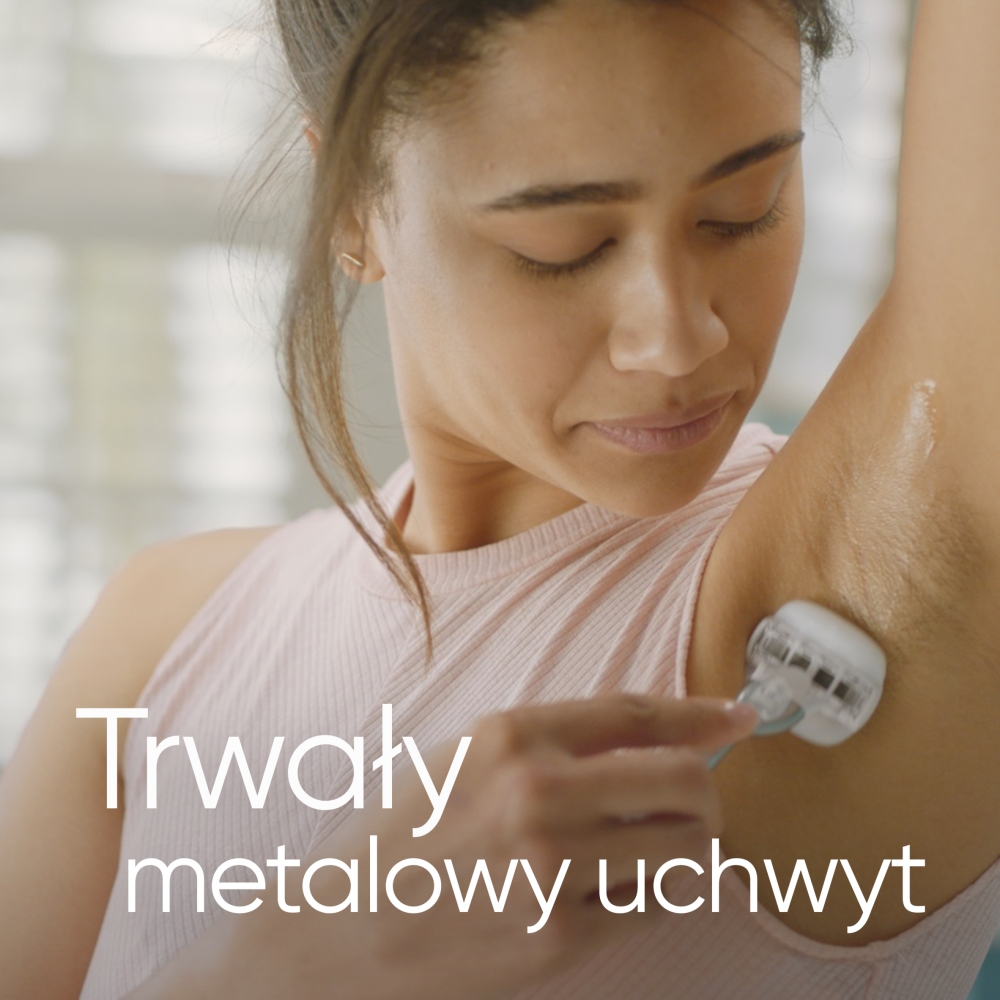 Najdłużej utrzymująca się gładkość*: odrobina nawilżenia i zapach Sugarberry (* w porównaniu z maszynkami Venus wyposażonymi w 3 ostrza)